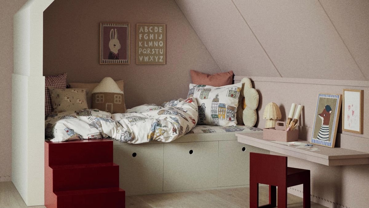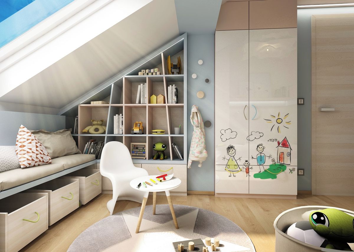 Kdo by někdy nesnil o romantickém útulném koutku v podkroví… Pravda však je, že z praktického hlediska bývá oříšek ho zařídit. Jak na to, když tam potřebujete vtěsnat vše pro své potomstvo?