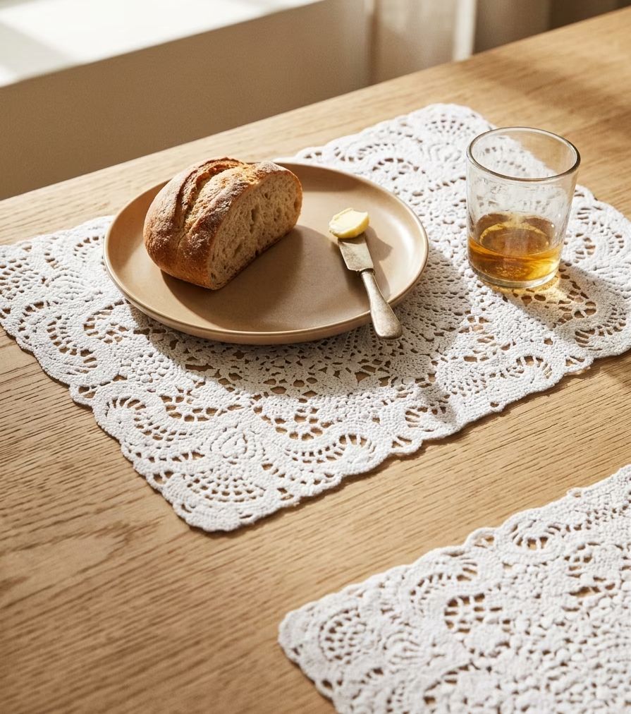 Oblíbené zůstává prostírání z přírodních materiálů, jako je ratan nebo juta, které najdete v mnoha designových variacích. Skvěle ladí s rustikálním stylem, ale neztratí se ani v minimalistickém interiéru. Vynikne na skleněném stole i na jednoduchém bavlněném ubruse.