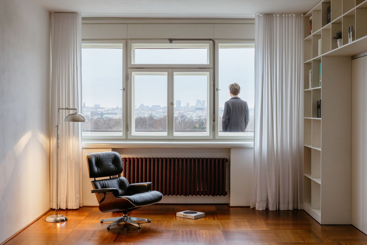 Jak to u rekonstrukcí v hodnotných historických objektech bývá, vzrušující práce začínají už při zkoumání původního zařízení – a architekti se pochopitelně snažili zachovat ho v co největší možné míře. Zůstaly čtvercové mahagonové podlahy, vnitřní dřevěné dveře s kováním z bílé mosazi, ocelové zárubně, litinové radiátory, venkovní dřevěné rolety i opaxitové obklady.