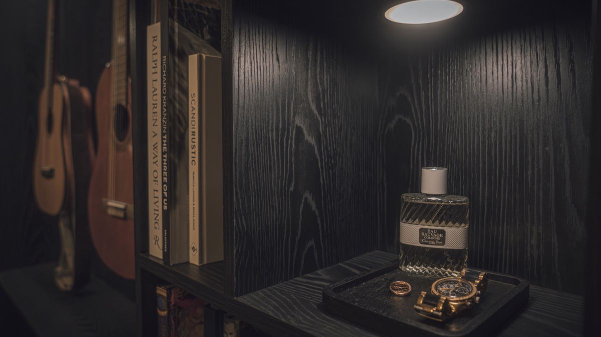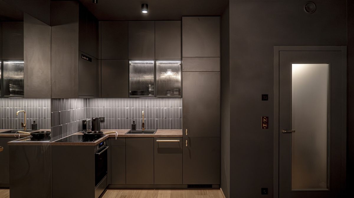Zatímco většina malých bytů sází na světlé odstíny, tady je tomu přesně naopak. Celý interiér autoři ladili do tmavých tónů, které mají vytvářet příjemnou intimní atmosféru. Důležitou roli hraje osvětlení. Tlumené, teplé světlo pracuje se stíny a pomáhá prostoru dodat hloubku i pocit útulnosti.