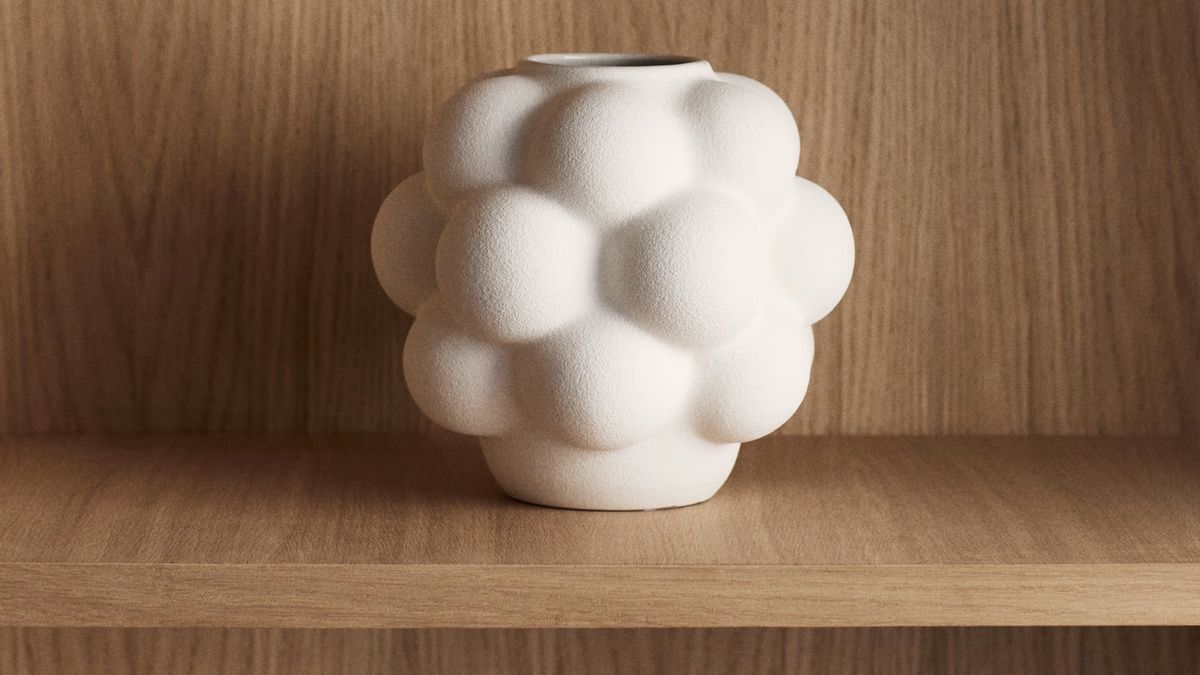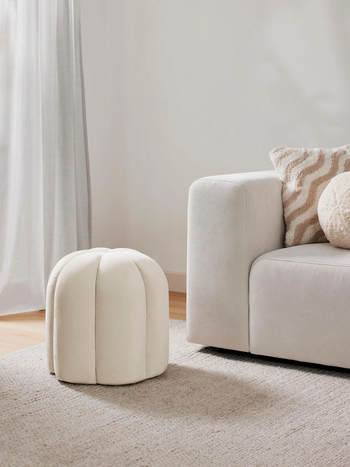 A co si v odstínu Cloud Dancer pořídit? Prakticky cokoli. Sáhnout můžete po měkoučkém sametovém taburetu, koberečku či obrazu, ale i po drobnějších doplňcích, jako je dekorační polštářek, svícen nebo vázička.