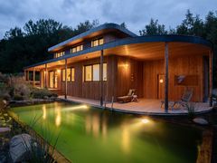 Dalším příjemným místem v domě je relaxační koupelna s vanou a infrasaunou, kterou si majitelka užívá zejména v zimě: „Ve spojení s jezírkem mám v domě kompletní wellness, což oceňují i kamarádky. A návštěvy s dětmi zase oceňují to, že se do jezírka dá vzhledem k jeho hloubce i bezpečně skákat.“