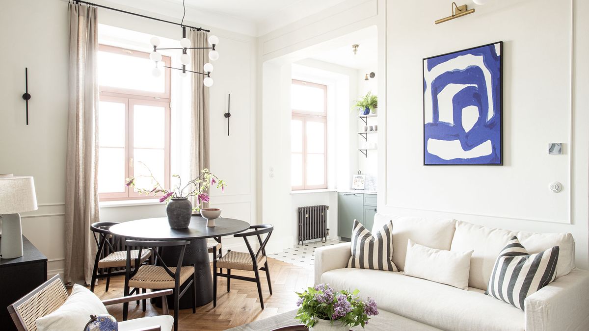 Co se zařízení týká, funguje zde kombinace původních a současných prvků. Historický charakter bytu připomínají špaletová okna nebo dubové parkety v obytných místnostech. Naopak vstupní chodba a koupelny dostaly moderní terrazzo. Jednotlivé části interiéru sjednocují mosazné detaily a také odstín slonové kosti, který se objevuje na oknech, dveřích i vybraných nábytkových kusech.