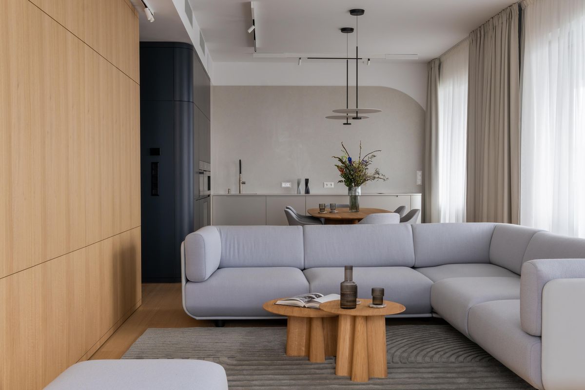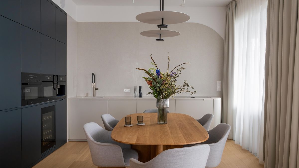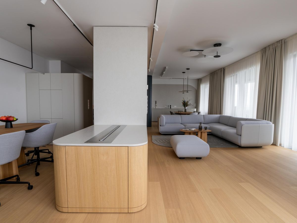 Byt má 151 metrů čtverečních a patří k němu 35metrová terasa. Na doporučení zástupců developera oslovila majitelka architektonické studio Polygram, kde pro ni navrhli kompletní interiér. „Spolupráce byla výjimečná, architekt Tomáš Hric ve spolupráci s architekty Marošem Galážem a Tomášem Lindovským velmi dobře odhadli moje preference, co se stylu, materiálů i barevnosti týče. Trpělivě se mnou konzultovali vybavení a hledali ta nejlepší řešení,“ pochvaluje si majitelka.