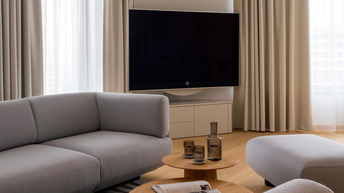 Velký úspěch měl u klientky bioetanolový krb, jehož plamen je možné regulovat, a také levitující 77palcový televizor, který se dá vysunout do prostoru, aby byl v ideální pozici pro sledování, a poté vrátit zpět, aby nepřekážel.