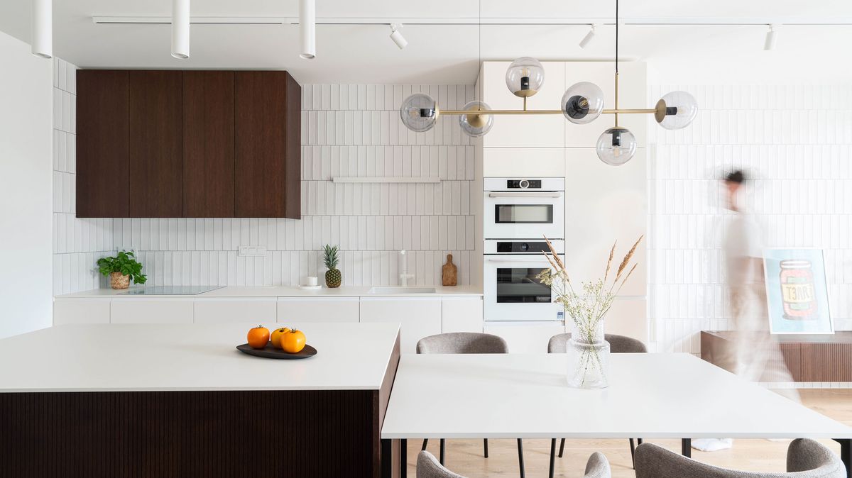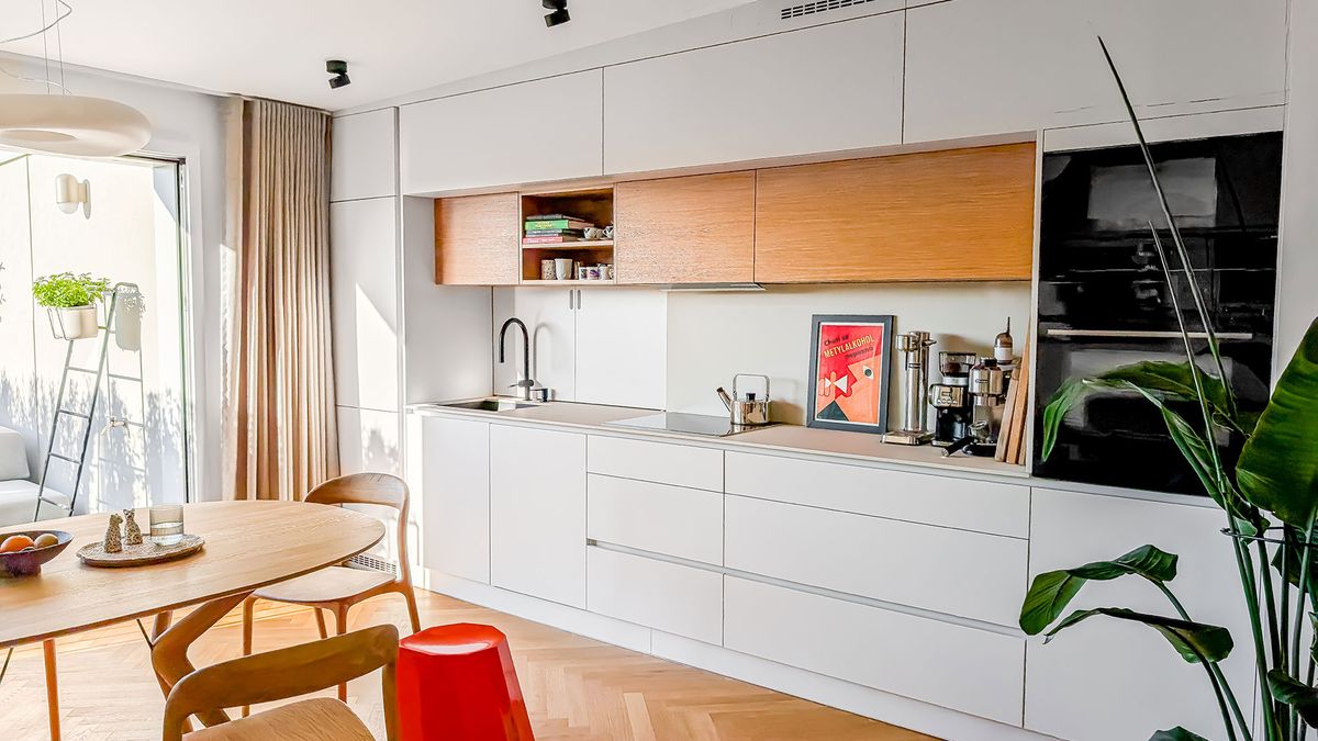Důraz kladli také na použití kvalitních materiálů. Na podlaze jsou parkety, nábytek je z lakované MDF a dřevěné dýhy, pracovní deska z materiálu Lapitec, což je 100% přírodní materiál označovaný jako slinutý kámen.