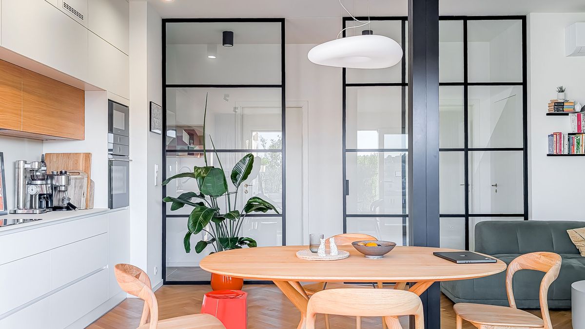„Šlo nám hlavně o co nejlepší využití výhledu, který byt nabízí. Chtěli jsme interiér nechat vzdušný a minimalistický, což vyžadovalo kreativitu v tvorbě úložných prostor. Nakonec se to povedlo skvěle,“ říká k tomu majitel.