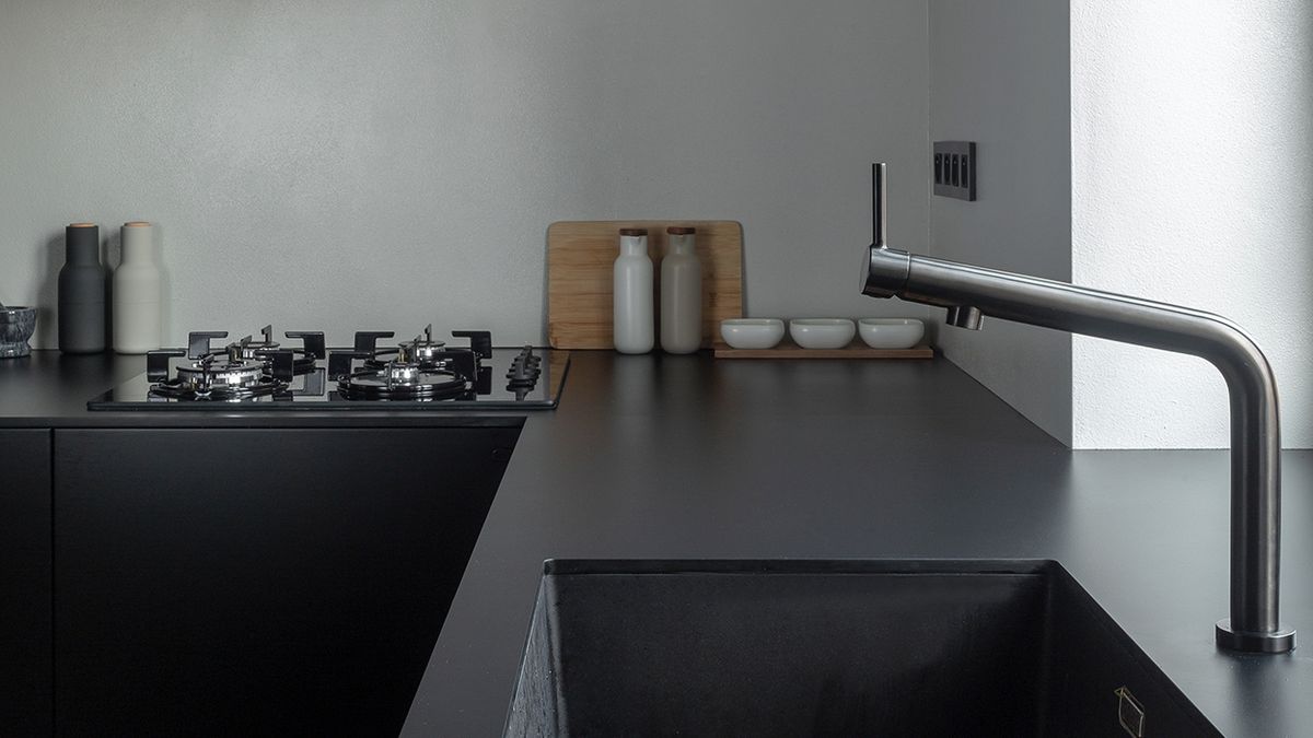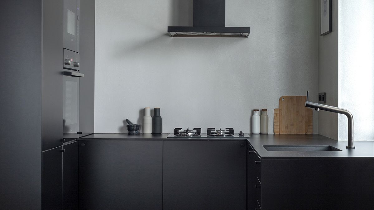 Majitelé si přáli interiér ve skandinávském stylu, minimalistický a barevně neutrální. A zakomponovat chtěli také svou oblíbenou černou barvu. „Jinak jsem dostal poměrně volnou ruku. Jediným požadavkem byla černá kuchyně a bílá koupelna s černými zařizovacími předměty. Mělo jít o jednoduchý a strohý interiér, který se nebojí surovosti,“ popisuje architekt.