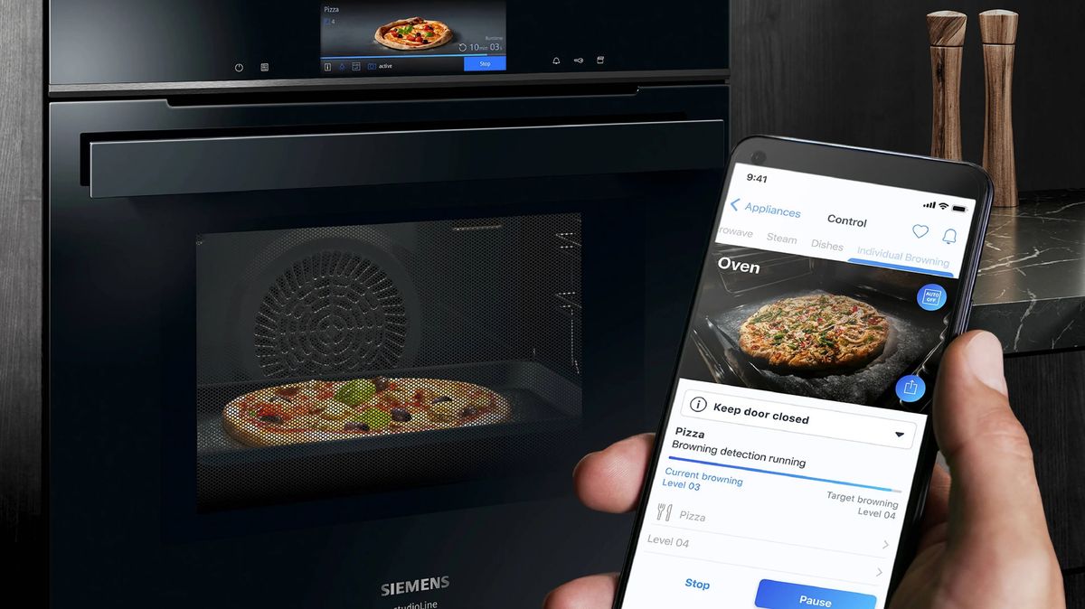 Integrovaná kamera sama pozná druh připravovaného pokrmu a automaticky zvolí nejlepší nastavení, případně vám pošle fotku, abyste věděli, v jaké fázi je proces přípravy. Dálkové ovládání umožní předehřát si troubu už po cestě z práce. Přes aplikaci se dá také sledovat celý proces pečení a nakonec dostanete upozornění, že je jídlo hotové.
