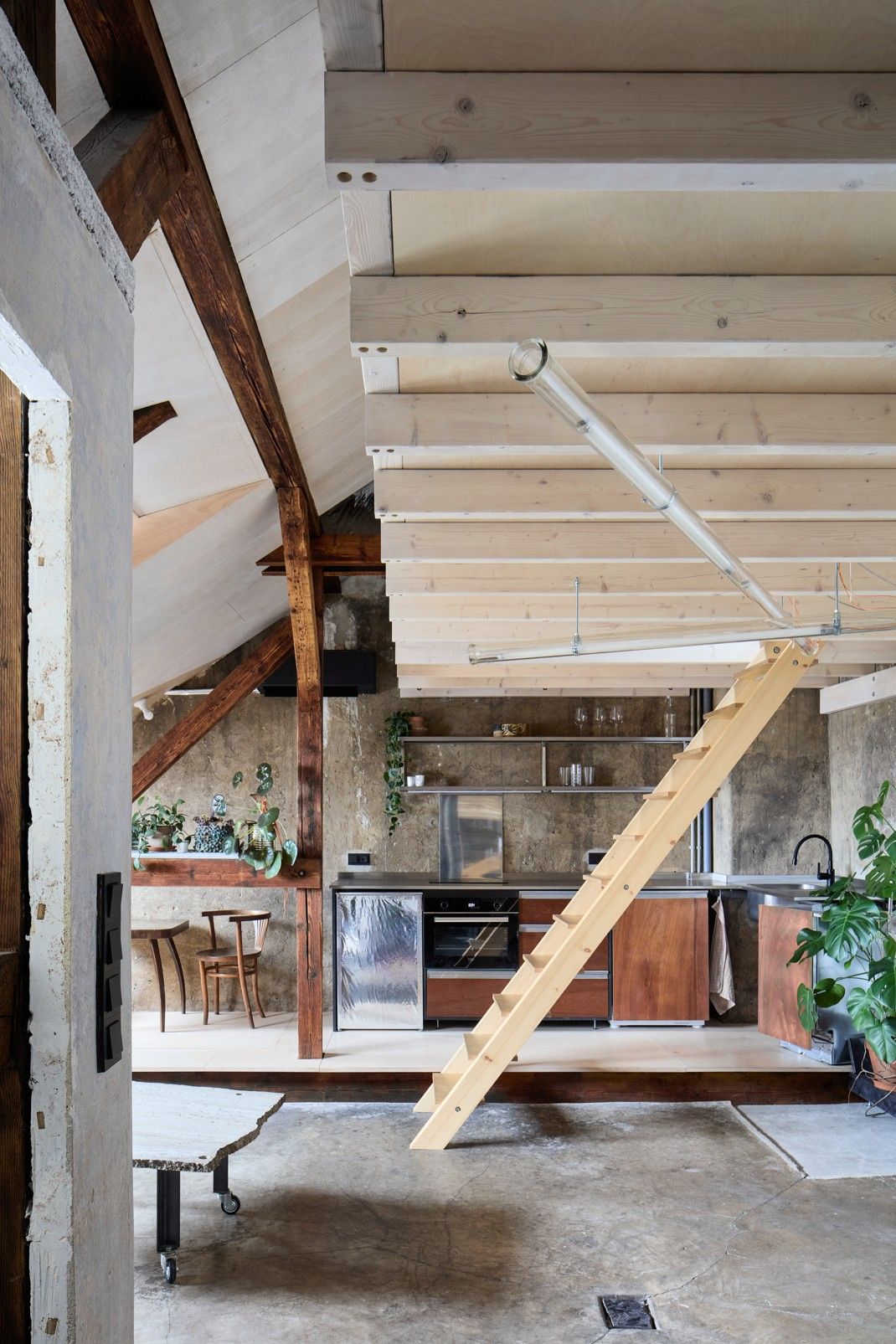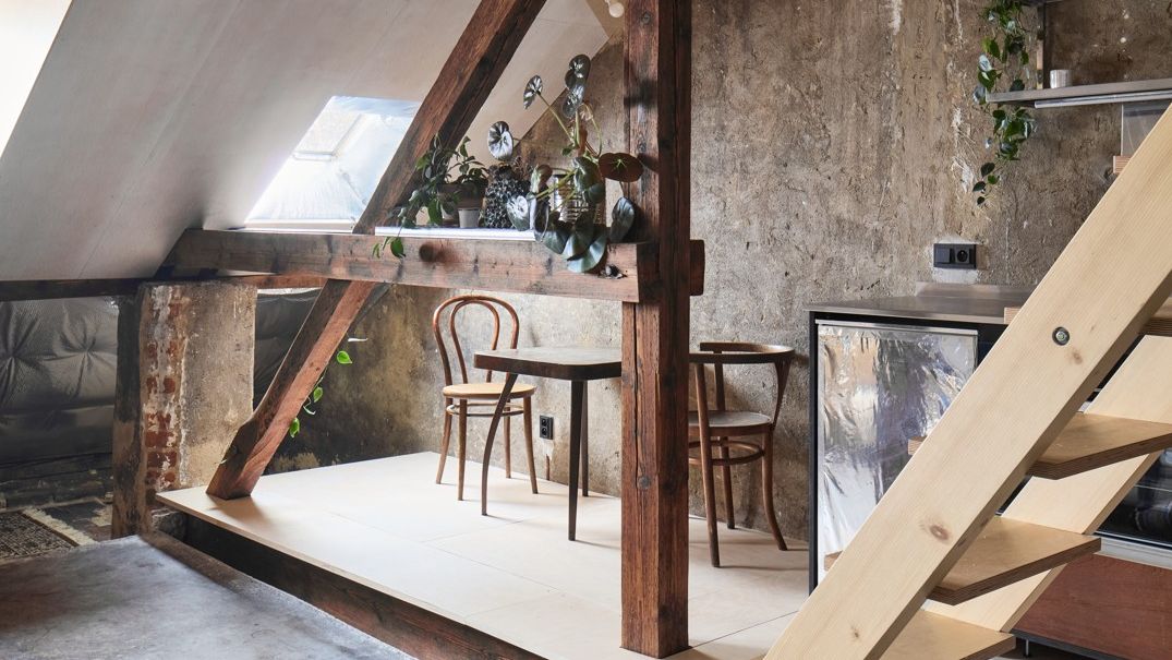 Být sám sobě klientem je pro architekty za odměnu. Minimálně to platí o týmech ze studií Totalbrutal a Svobodová Bláha Architekti. Právě pro architekta ze studia Totalbrutal se rekonstruovaly půdní prostory starého bytového domu. Na tomto místě měl vzniknout inspirativní ateliér pro práci, ale zároveň i místo k bydlení. Místo klasických výkresů, vizualizací a konzultací s klienty se autoři nechali pohltit samotnou tvorbou. Mnohá řešení tak vznikala za pochodu.