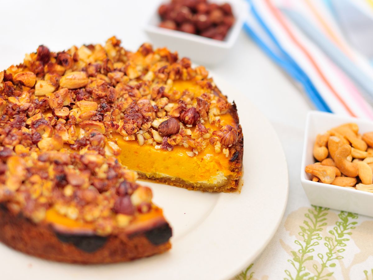 Hotové těsto zabalte do fólie a nechte odpočinout aspoň 30 minut v chladu. Mezitím dýni uvařte do měkka (hokkaidó se nemusí loupat), nechte vychladnout, a poté ji rozmixujte s kondenzovaným mlékem, vejci, třtinovým cukrem, skořicí a muškátem. Tvaroh ochuťte citronovou kůrou.