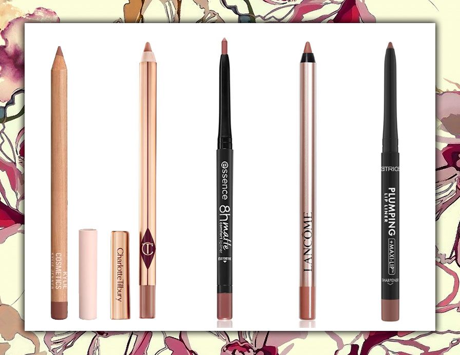 Zleva: Konturka Kylie Cosmetics, 440 Kč, odstín Comes Naturally; Konturka na rty lip Cheat, Charlotte Tilbury, 780 Kč, odstín Iconic Nude, prodává Sephora; Tužka na rty Essence, 50 Kč, odstín 04 Rosy Nude, prodává dm drogerie; Tužka na rty Lancôme Lip Idôle Liner, 790 Kč, odstín 21 Throwing Beige; Tužka na rty Catrice Plumping, 65 Kč, odstín 069 MainhattanFoto: Archiv firem