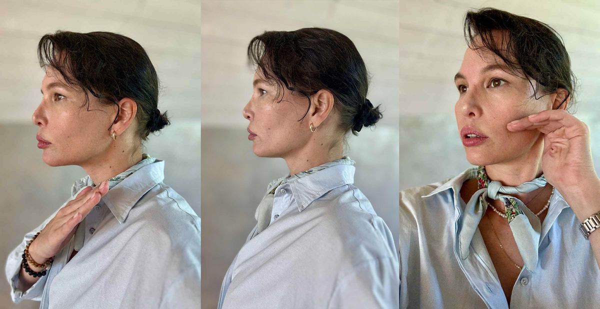 „Často koukáme dolů do mobilu nebo počítače, hlava je v předklonu, a tím pádem vytváří úplně jinou váhu na páteř. Svaly vzadu na krku se zkracují, přední ochabují, a to pak vede k tomu, že padají kontury a vzniká i dvojitá brada,“ vysvětluje další oslovená expertka na face jógu, Lica Arabadzi. Za druhou bradu si tudíž můžete opravdu sami. Naštěstí to lze napravit.