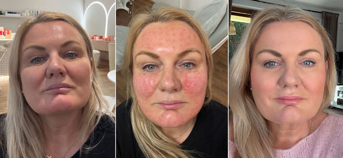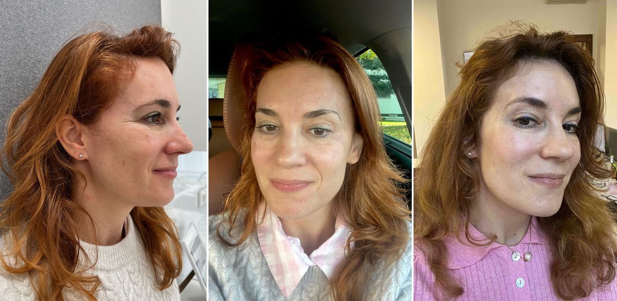 Šéfredaktorka Monika zkoušela ošetření exosomy, které probíhá injekčně: Před procedurou, hned po ní a po druhém ošetřeníFoto: Archiv Moniky Sokolové