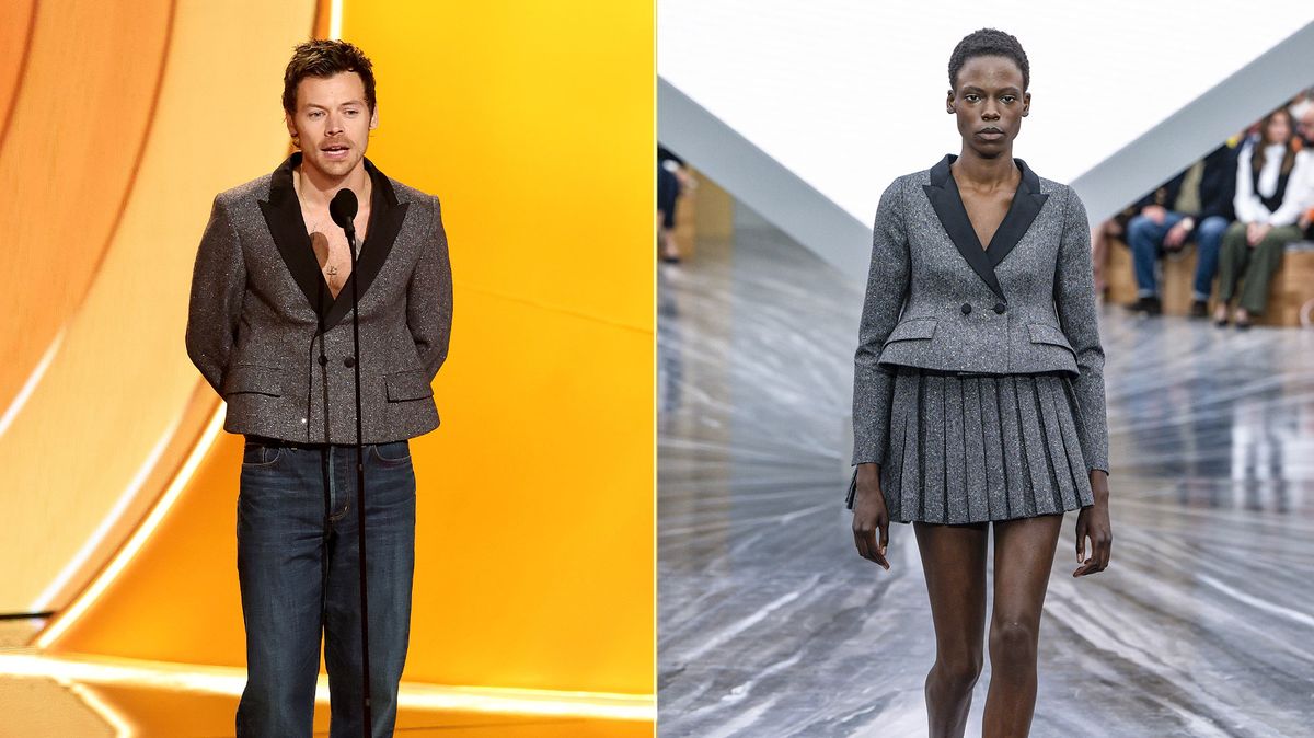 Harry Styles si naposledy pořídil dámské sako z nové kolekce značky Dior, které se na módní přehlídce objevilo v doprovodu sukně. Sako si oblékl přímo na tělo a doplnil ho džínami, v nichž na Grammy předával jednu z hlavních cen. Ještě více než sako ale pozornost budily jeho boty – vklouzl totiž do zelených nazouváků s mašličkou, opět z dámské kolekce.