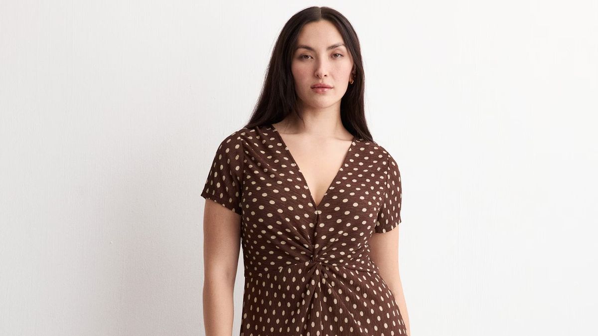 „Určitě bych doporučila výstřih, ideálně do véčka,“ říká stylistka na otázku, na co se při výběru jarních šatů pro plnější poprsí zaměřit jako první. Právě véčkový výstřih patří k nejjednodušším způsobům, jak siluetu opticky zjemnit.