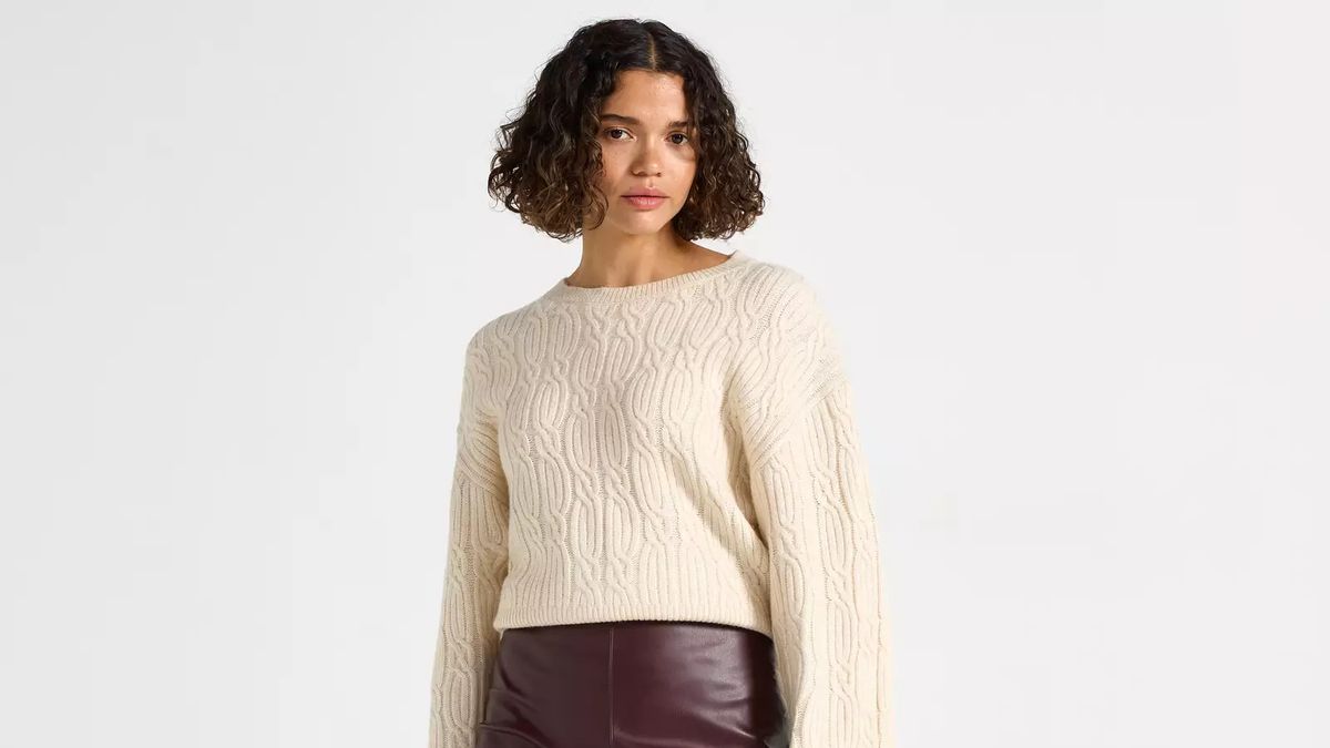 Ideální příklad toho, jak můžete jednotlivé kousky v rámci outfitu vrstvit. Síťovaný top sladěný s větší pletenou vestou je dokonalou volbou na volnočasové aktivity. Bude vám teplo, ale ne horko! Všimněte si použité palety barev – hnědá, bordó a krémová dokonale ladí. Teploty klesají k nule? Pod vestu oblékněte top s s kašmírem nebo merinem a pod sukni termo punčocháče!