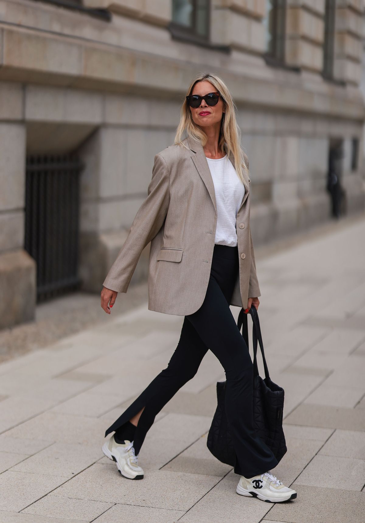 Ano, k legínám můžete přidat i tenisky. Pokud je ale chcete stylově povýšit, zaměřte se na kontrastní obutí a výraznější kousky. Módní znalkyně je nejčastěji kombinují se strohým sakem a podpatky, které můžete vyměnit za subtilnější balerínky. V zimě se nabízí spojení s masivními kozačkami a objemnou koženou bundou, případně s uhlazenějšími jezdeckými kozačkami a delším kabátem.