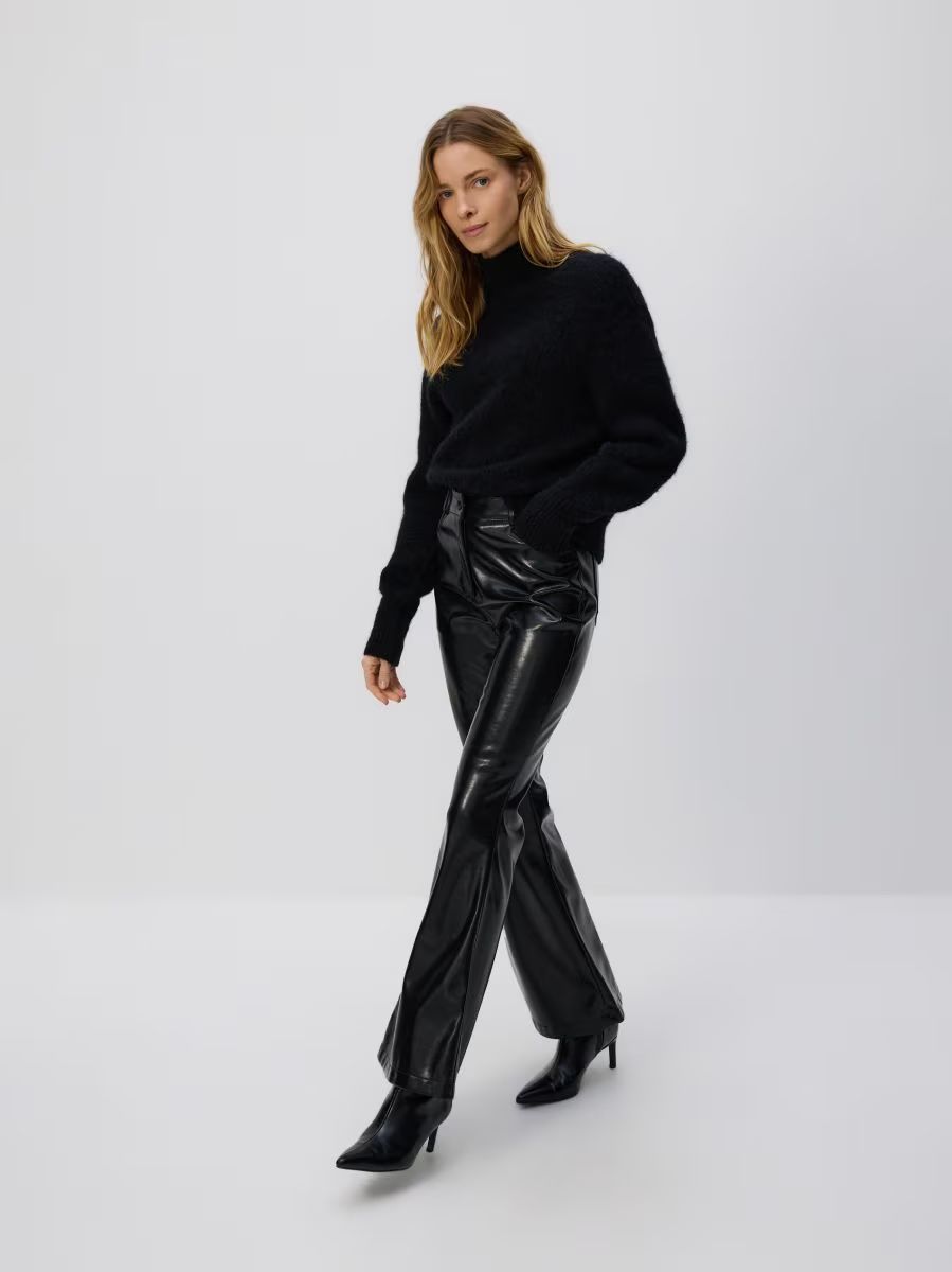 Kalhoty s koženým vzhledem díky jemnému reliéfu a decentním odleskům dodají každému outfitu nádech elegance i mladistvý náboj. Překvapí vás i tím, jak snadno se kombinují – stejně jako nadčasové džíny. Perfektní módní koktejl vytvoří s huňatým oversized svetrem s rolákovým stojáčkem nebo kulatým výstřihem, doplněným trendy kožíškem či vlněným kabátem a vyššími kozačkami. Nebojte se ani širší nohavice zastrčit do bot. Vznikne tak stylová „jezdecká estetika“, kterou už před lety milovala princezna Diana.