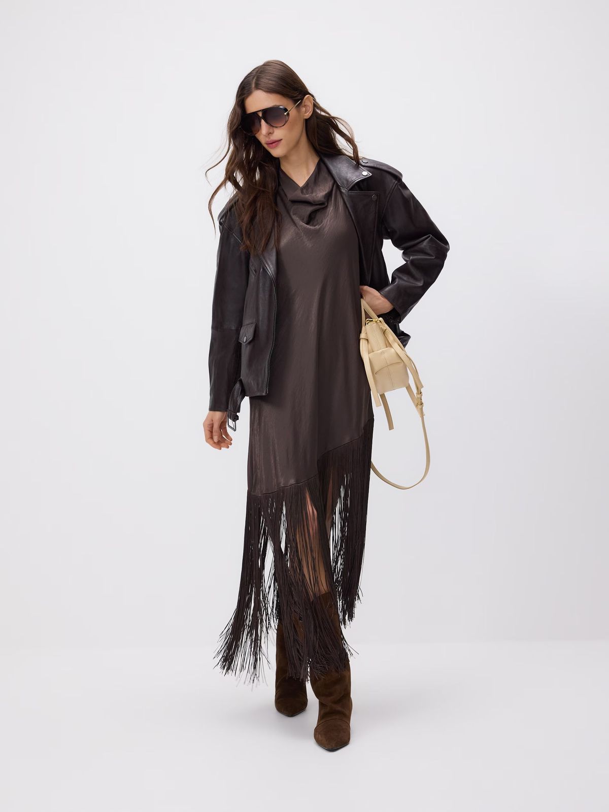 Ačkoliv ani letos nepřijdete o klasické třásně na koženkových bundičkách, kovbojkách a jiných doplňcích, přehlušily je elegantní dlouhé útlé třásně, především na lemech jednoduchých modelů. Festivalově laděný detail tak ustupuje noblesnější podobě.