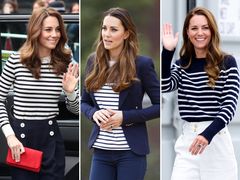 Jestli je nějaký motiv pro šatník princezny Kate typický, pak jsou to právě proužky. Zatímco dřív je nosila především v klasické modro-bílé kombinaci, postupem času je ve stylingu odvážnější, aniž by přitom slevila ze své pověstné elegance.