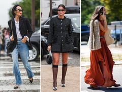 Elegantní komplety z tvídu nebo buklé jsou pro Chanel charakteristické a jsou základem všech kolekcí značky. Tvídová saka jsou v kurzu stále, a pokud je nechcete doplnit sukní, klidně k nim přidejte oblíbené džíny.