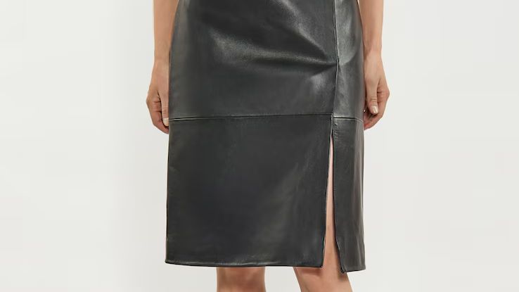 Černou koženou sukni doplnila bundou v odstínu hořké čokolády a všem pochybovačům tak dokázala, že si tyhle dvě barvy mohou skvěle rozumět. Outfit složený z kožených kousků doplnila lodičkami s kovovou špičkou, psaníčkem a také průsvitnými černými punčochami, které celek příjemně odlehčily.