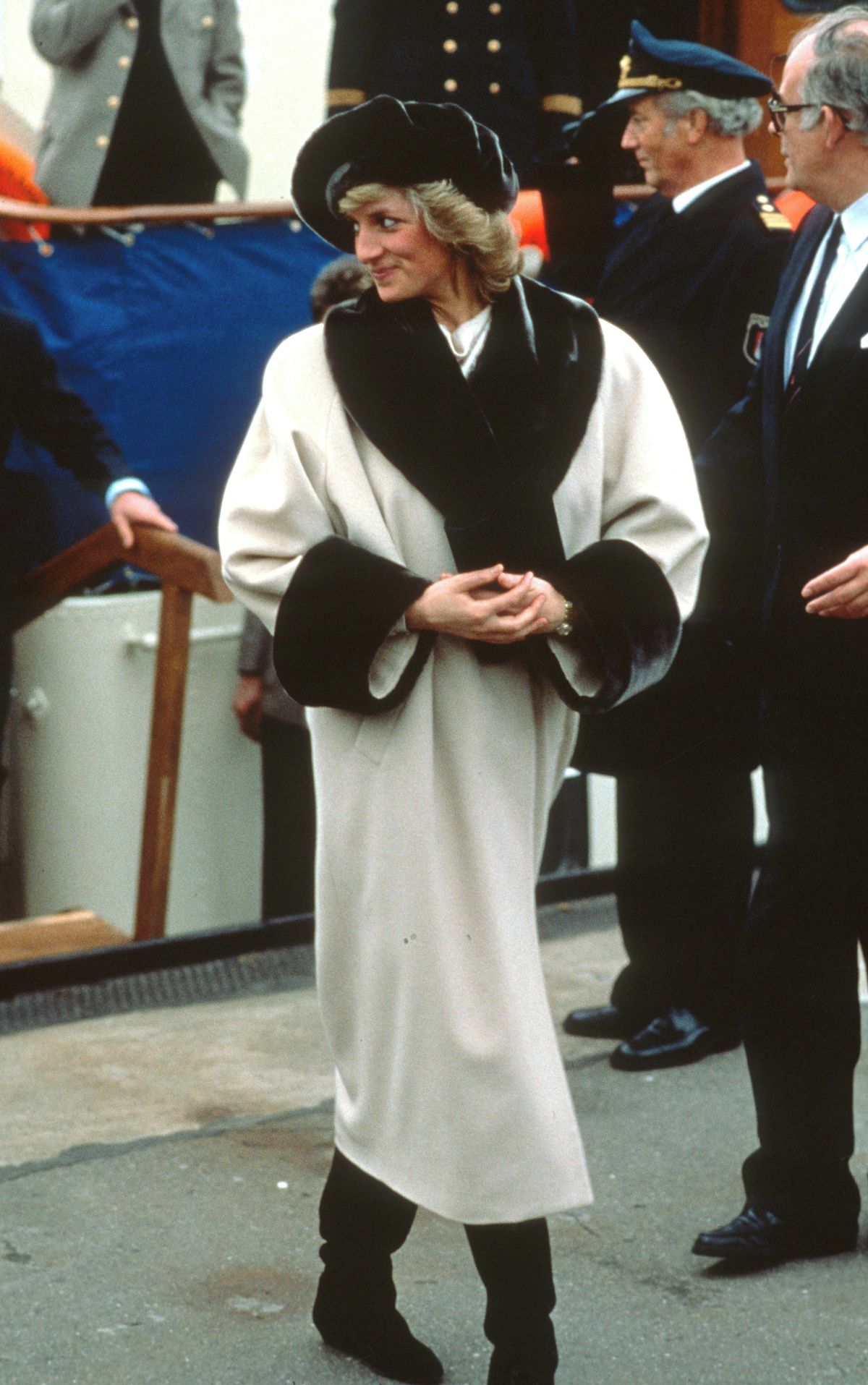 Princezna kladla při tvorbě zimních outfitů největší důraz na výběr kabátu, který byl jen málokdy nenápadný. V jejím šatníku se střídaly svršky s kožešinovými lemy a detaily, které jsou velmi trendy i dnes a přirozeně do něj patřil také jeden z nejpopulárnějších vzorů královské rodiny, kostka. Princezna se nevyhýbala ani výraznějším odstínům, jako byla červená, žlutá nebo modrá, a nejvíce kabátů měla ušitých od své dvorní návrhářky Catherine Walker.