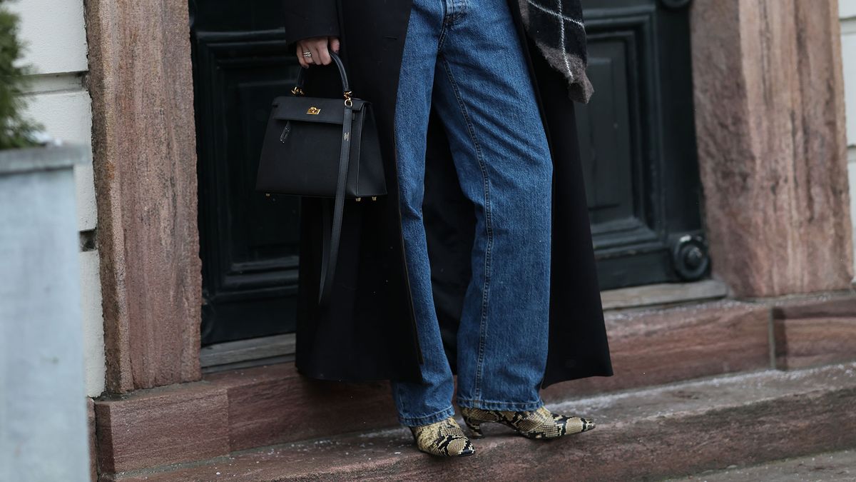 Tahle kombinace potěší všechny milovnice zvířecích vzorů. Hadí motiv na doplňcích, který vloni bodoval, letos stále kraluje – a na botách vypadá stylově a zároveň luxusně. Výrazný pár kotníkových bot krásně vyváží jinak minimalistický outfit a dodá mu špetku módního koření.