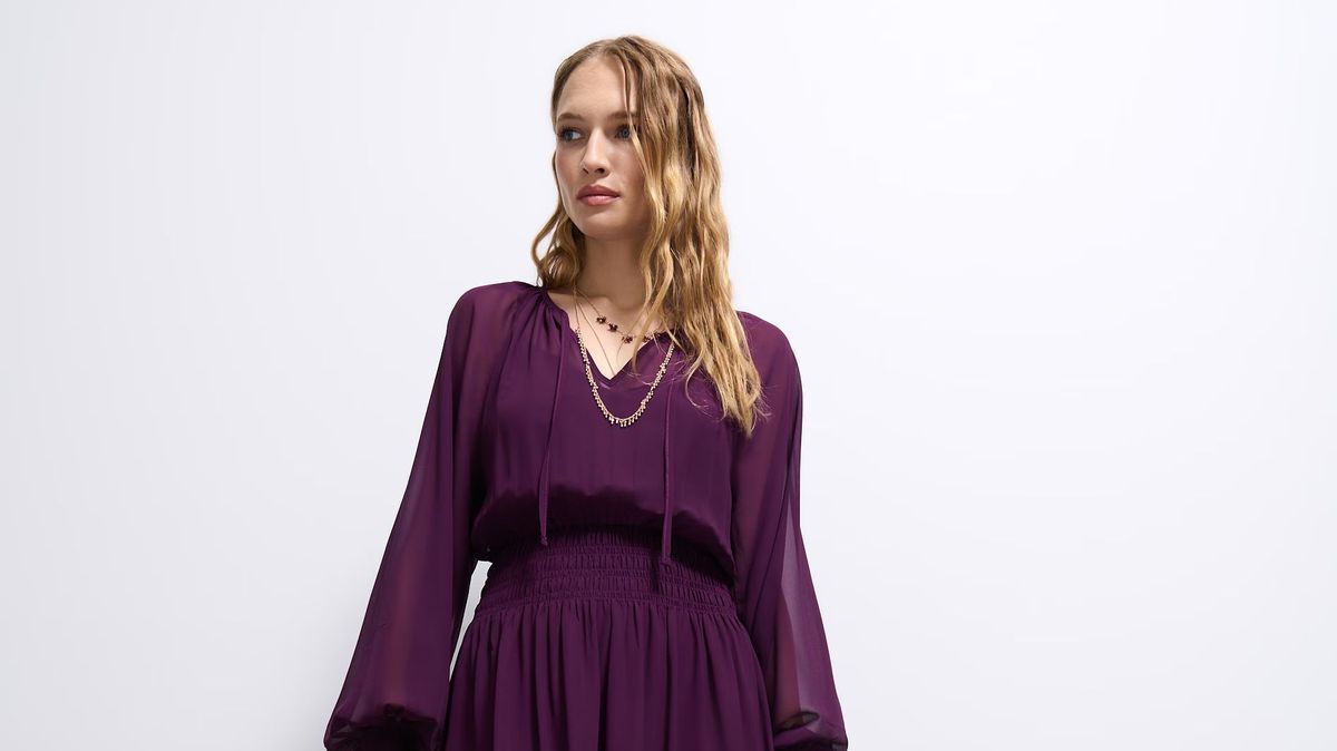 Žádné šaty se na podzim a v zimě nehodí tolik jako úpletové. Měkké, hřejivé materiály letos doplňují lehce volnější střihy, kulaté i véčkové výstřihy a také úvazy v pase. Právě tyto detaily lichotí ženám plnějších křivek – zejména výraznější véčkový výstřih, který opticky protáhne a zeštíhlí siluetu. Navíc je to i šikovná volba pro ženy s větším poprsím, protože dekolt vizuálně odlehčí (naopak třeba vysoký stojáček ho ještě zvýrazní).