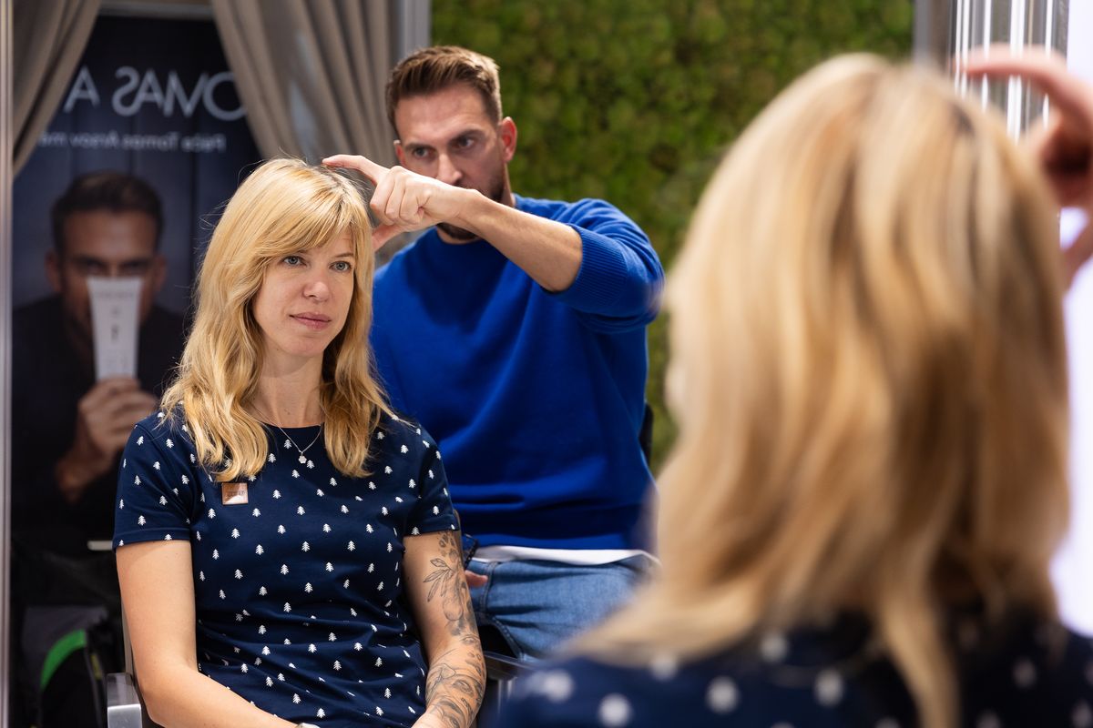 Pavla se trefila do (velmi výjimečně) prázdného okna kadeřníka Tomáše Arsova, majitele salonu Tomas Arsov Hair & Beauty Institute. Ten se řídí mottem, že trendy jsou až na druhém místě a o výsledné barvě i střihu se rozhoduje na základě tvaru obličeje a barevné typologie. Každou vlasovou proměnu proto začíná důkladnou konzultací, která se v Pavlině případě protáhla na hodinu.