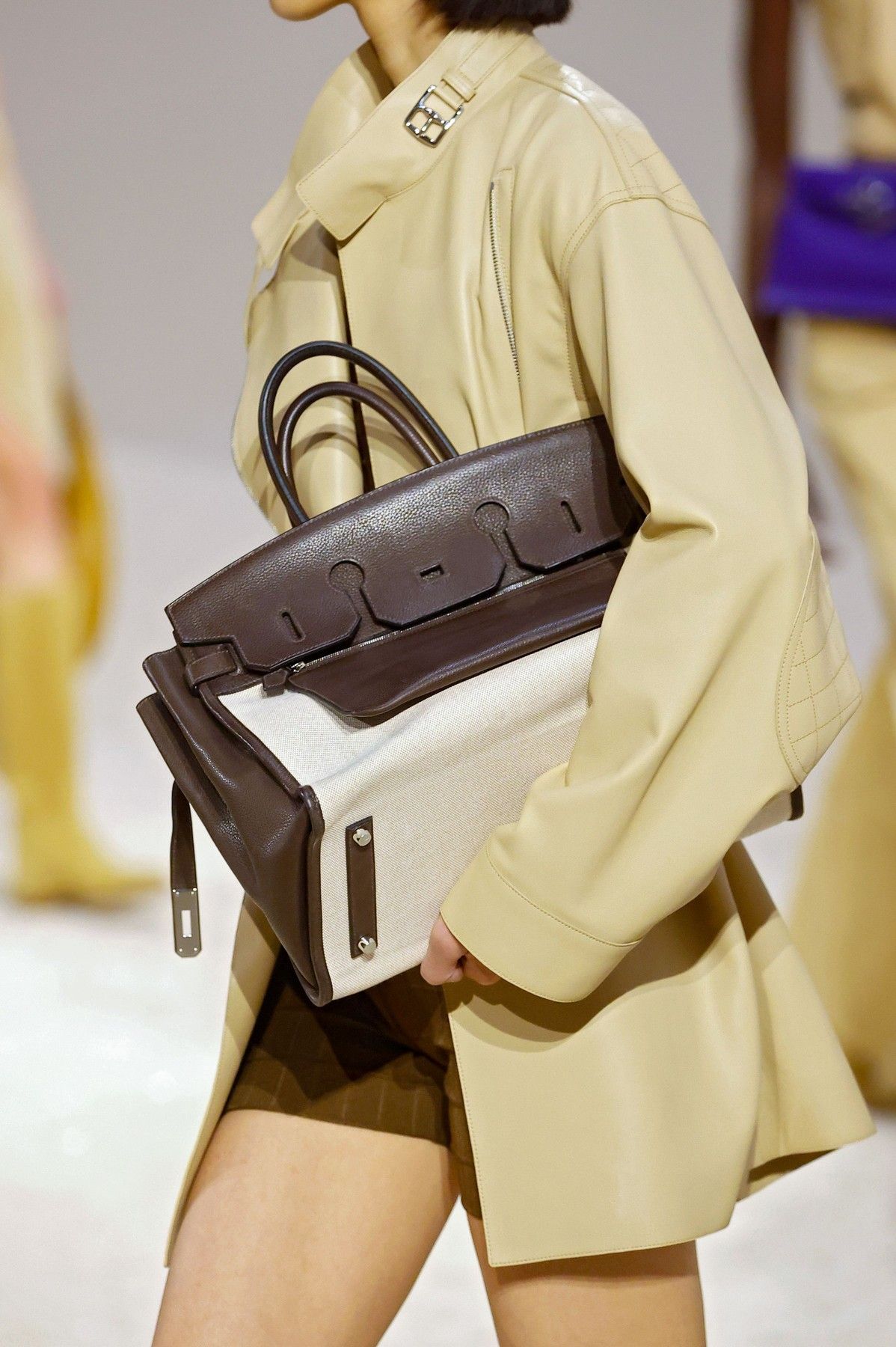 Návrháři vyslyšeli naše přání a jarní kolekce plnili prostornými praktickými kabelkami, do kterých schováte všechny „nezbytnosti“. Ikonické kabelky od Hermès kombinovaly kůži s plátnem, návrhářka Stella McCartney vytvořila obrovské shopper kabelky se zaoblenými okraji a značka Bottega Veneta zůstala u oblíbeného efektu spletené kůže.