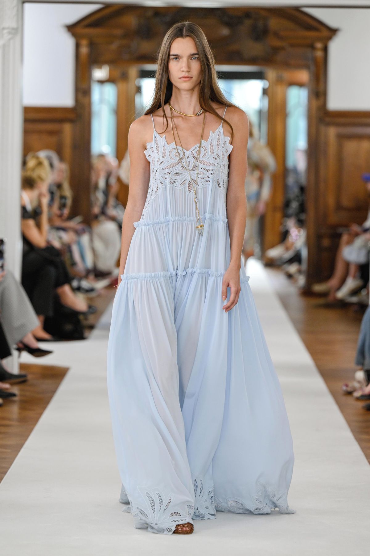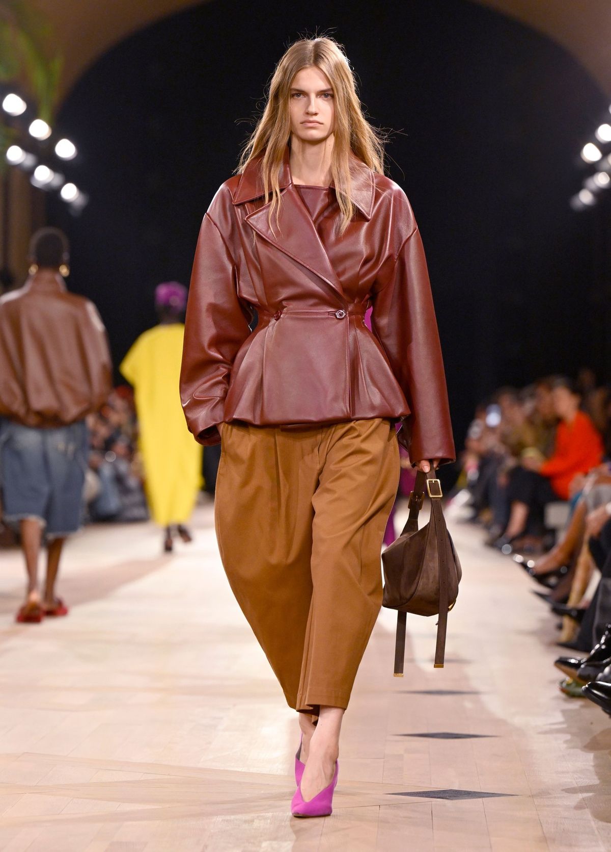 Kolekce na jaro/léto 2026 zaplavily maxi šaty. Letošní modely charakterizují lehké materiály, často také pastelové barvy a uvolněný boho styl, který skvěle ladí s placatými sandálky i bižuterií. Jedny z nejkrásnějších šatů se objevily na přehlídce značky Ulla Johnson, povedené kousky ale najdete i v běžných módních řetězcích. PS: Pokud s jejich nošením nechcete čekat, přehoďte přes ně kratší koženou bundu ve stylu bomberu.