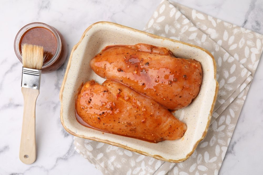 Kuřecí maso je skvělé na marinování, ideálně přes noc, kdy do něj mohou proniknout všechny chutě. Asi hodinu před tepelnou úpravou, tedy pečením, grilováním a podobně, marinádu z povrchu masa odsajte třeba papírovou utěrkou, aby se nepřepalovala.
