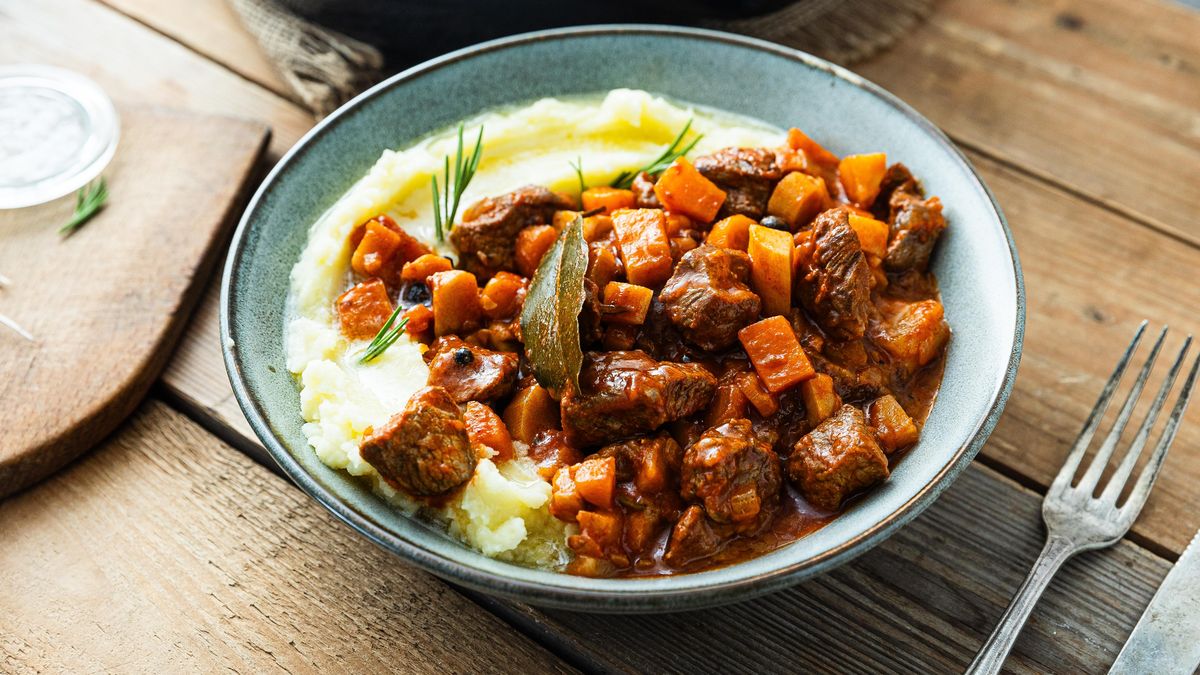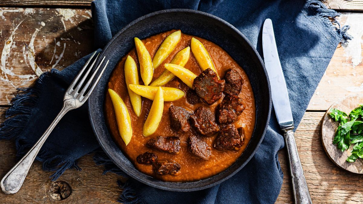 Tahle úprava roštěné patří mezi nejoblíbenější. Tajemství úspěchu spočívá v trpělivosti: maso se musí opéct dozlatova, aby se chuť zavřela uvnitř, a pak pomalu dusit ve vlastní šťávě. Hořčičná omáčka je jemná, krémová a lehce pikantní, aniž by přebíjela maso. A pak smažená cibulka – malá věc, velká radost. Křupe, voní a každé sousto pozvedne o úroveň výš.