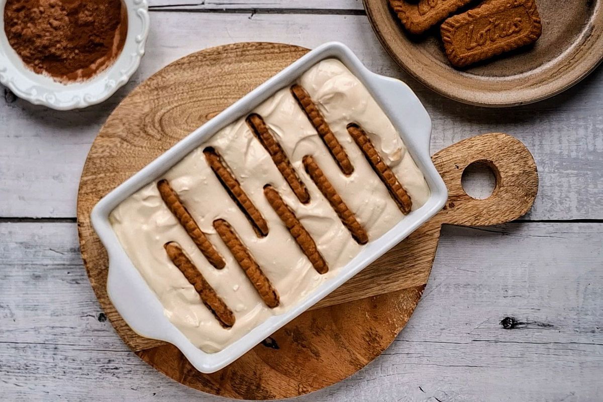 Čerstvý sýr (například Philadelphia) můžete vynechat, v originálním receptu je pouze řecký jogurt. Cukr nepotřebujete, karamelové sušenky jsou sladké dost.