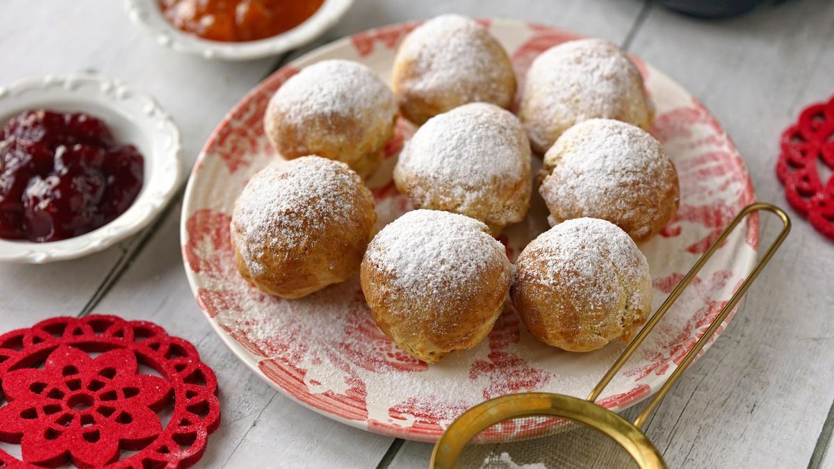 Zlaté koblížky vyndejte z tuku a položte je na papírovou utěrku. Koblihy nechte vychladnout a nakonec je naplňte pomocí cukrářského sáčku povidly. Moučkový cukr smíchejte s mletým mákem a hotové koblihy jím pocukrujte.