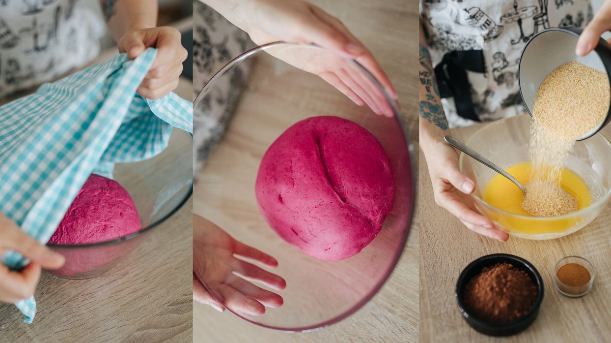 Z chladničky vyndejte vajíčka: na přípravu kynutého těsta by měla mít pokojovou teplotu. Řepu kupte předvařenou, nebo ji uvařte. Jednu větší bulvu pak rozmixujte dohladka s rozpuštěným máslem.