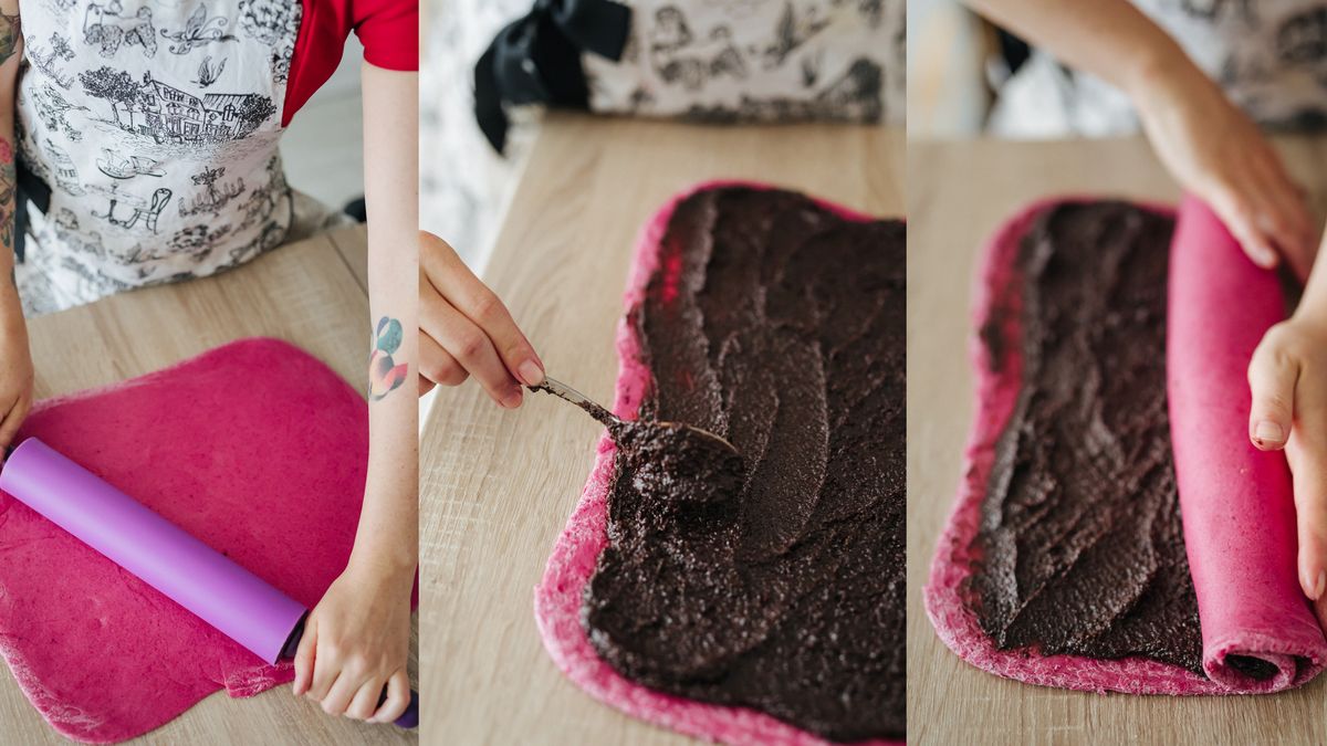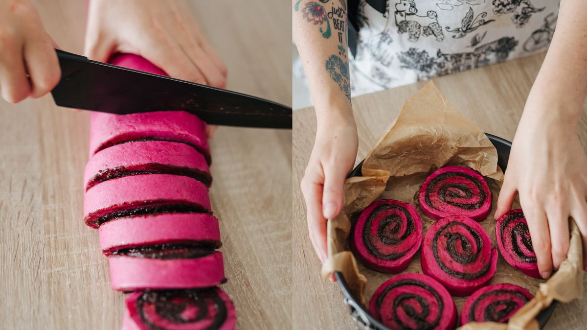 Kynuté skořicové šneky mají rádi snad všichni. A když do těsta přidáte i jednu červenou řepu a obarvíte ho na nevšedně růžovou, zaujmete i ty, kdo tomuto pečivu ještě nedali šanci. Řepu klidně použijte předvařenou – koupíte ji zatavenou ve fólii. Většinou jsou balené po dvou, tak tu druhou můžete použít do pomazánky, pohankových lívanců nebo zdravého kakaového koláče.