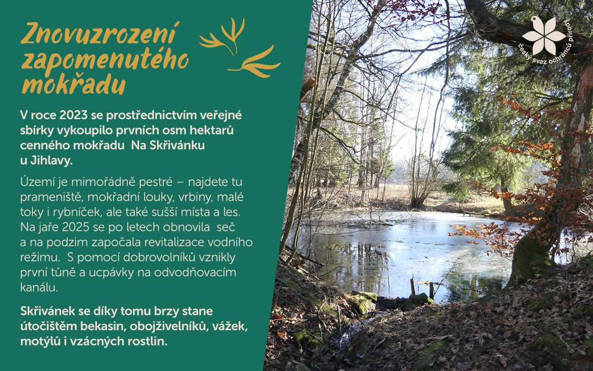 „Jsme jednou z největších nestátních neziskových organizací v oblasti ochrany přírody u nás a každoročně na péči o ni vynaložíme desítky milionů korun,“ říká Petr Janeček z Českého svazu ochránců přírody a zdůrazňuje: „To by nebylo možné bez štědrosti dárců. Proto v tento předvánoční čas oslovujeme širokou veřejnost s prosbou o pomoc.“