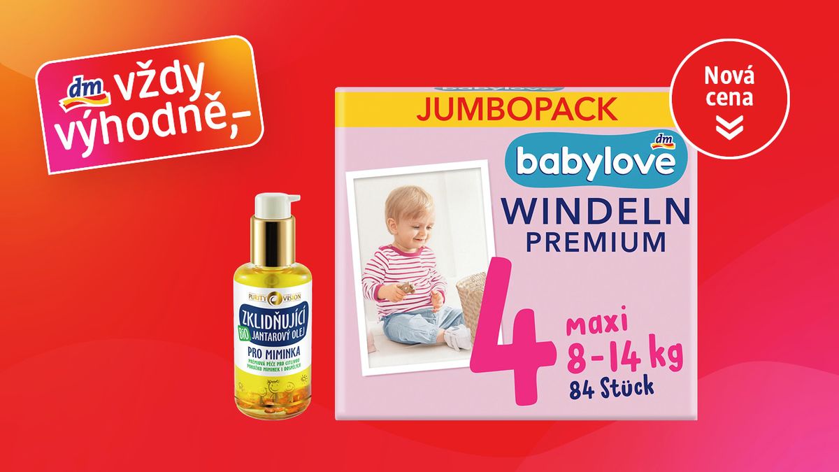 Díky dm dlouhodobým cenám, široké nabídce produktů výhodných dm značek, biokvalitě příkrmů, dm babybonusu či věrnostnímu programu dm active beauty je péče o miminko zase o něco jednodušší, a hlavně výhodnější. Ať už řešíte zásobu plen, ubrousků, nebo prvních příkrmů.