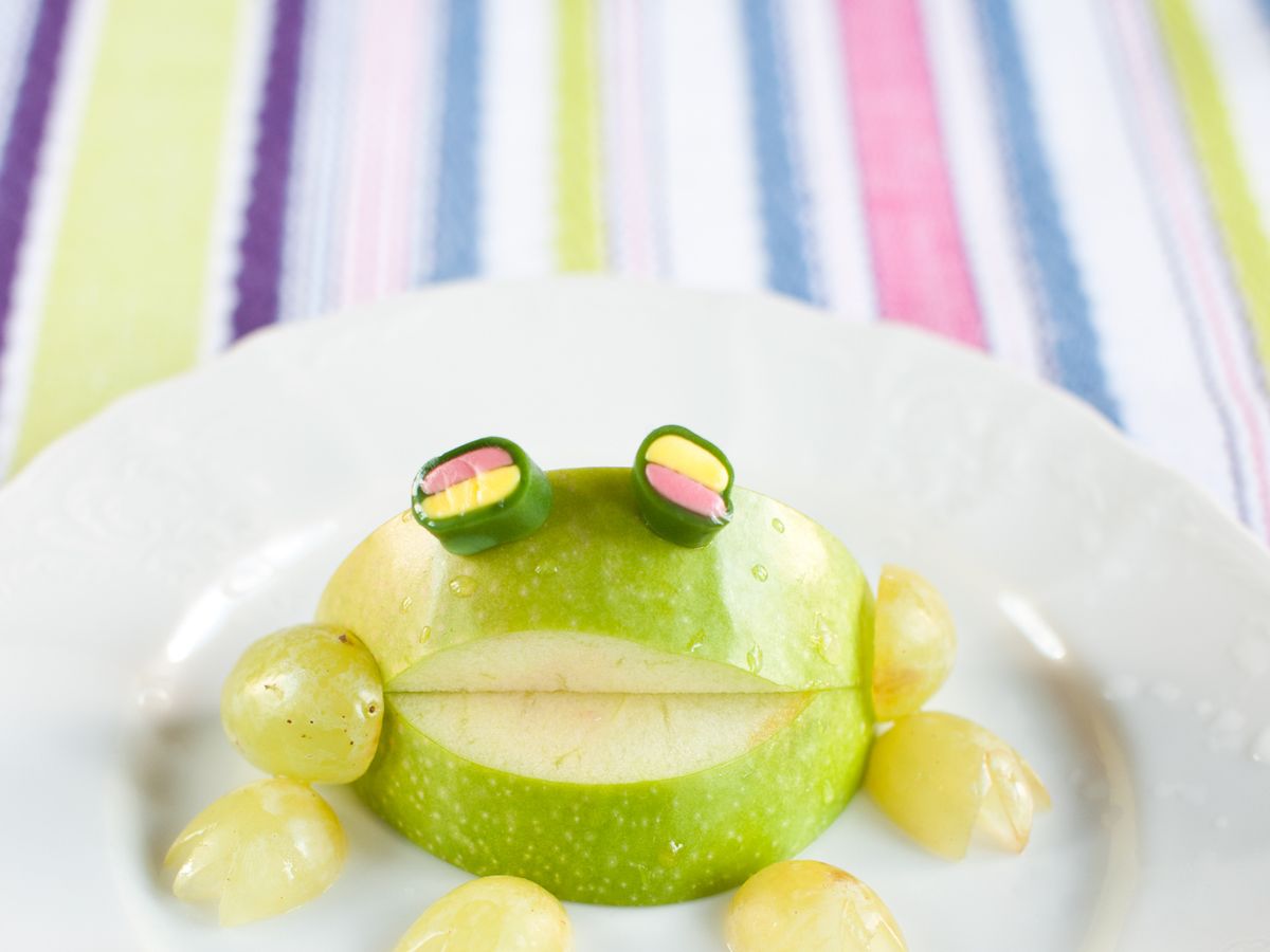 Vytvořte dětem hravou svačinku v podobě žabiček. Tato varianta je určitě pobaví a vzhledem k tomu, že zde najdou i malou laskominu v podobě bonbonků, rádi si na ní smlsnou.