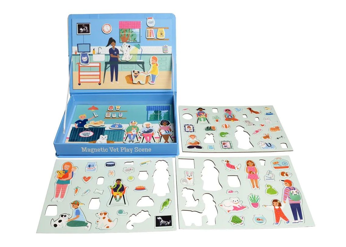 Hrací sada Magnetic Vet Play od značky Rex London má celkem 75 magnetických dílků a nabízí dvě scény z veteriny (čekárnu a ordinaci). Prodává Bonami za 639 KčFoto: Archiv firmy