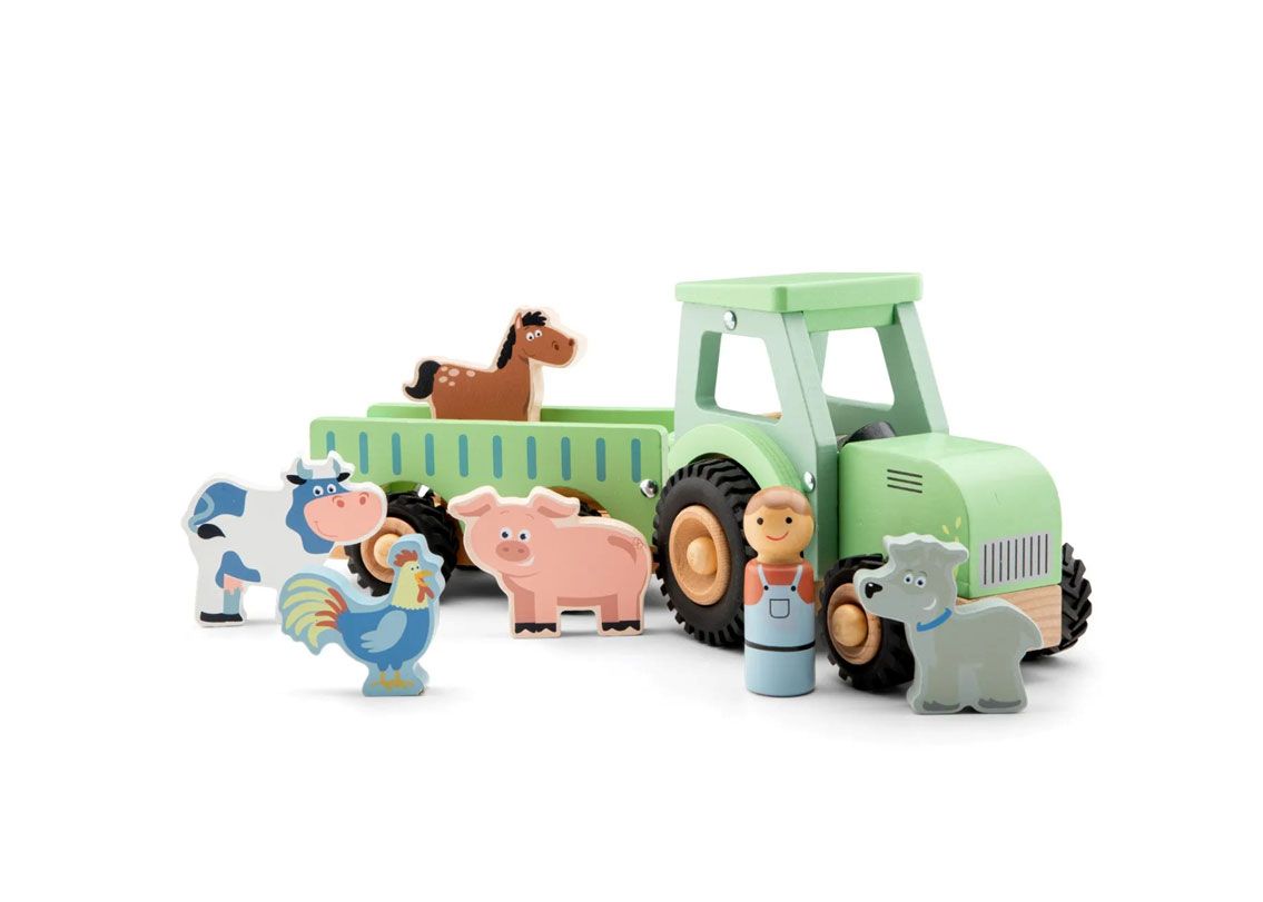 Dřevěný traktor od New Classic Toys je pro děti od 2 let. Patří k němu odnímatelný přívěs a pět zvířátek. Prodává Agátin svět za 999 KčFoto: Archiv firmy