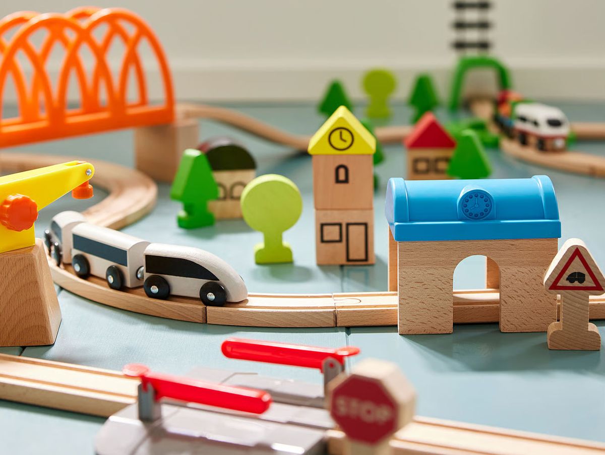 Bukový vláček s kolejnicemi Lillabo (celkem 45 kusů) je základ, ke kterému si mohou děti dokupovat další součásti a postavit si celé město. Prodává IKEA od 499 Kč Foto: Archiv firmy