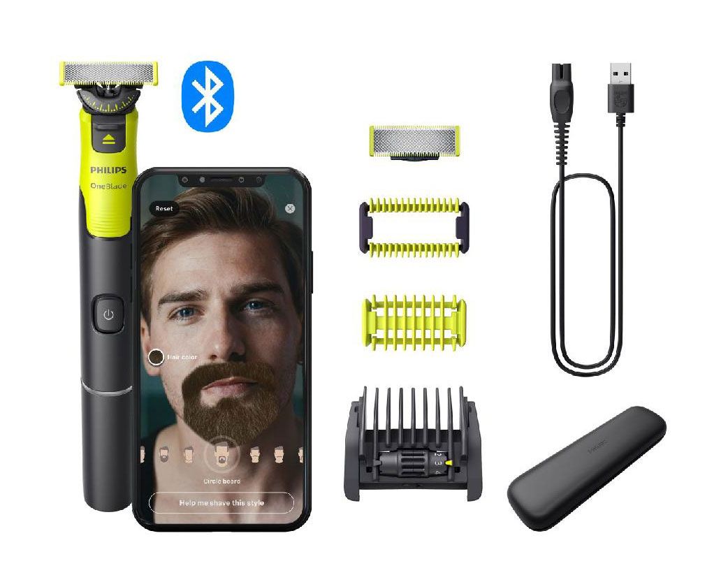 Muži, který si pěstuje vousy, uděláte radost přístrojem Philips OneBlade 360. Umí se přes Bluetooth propojit s aplikací, kde si na fotkách vyzkouší různé střihy. Speciální břit snadno zastřihne, tvaruj a oholí vousy všech délek (navíc v jakémkoli směru) a přitom nepodráždí pokožku. K dostání na Philips.cz za 1 799 KčFoto: Archiv firmy