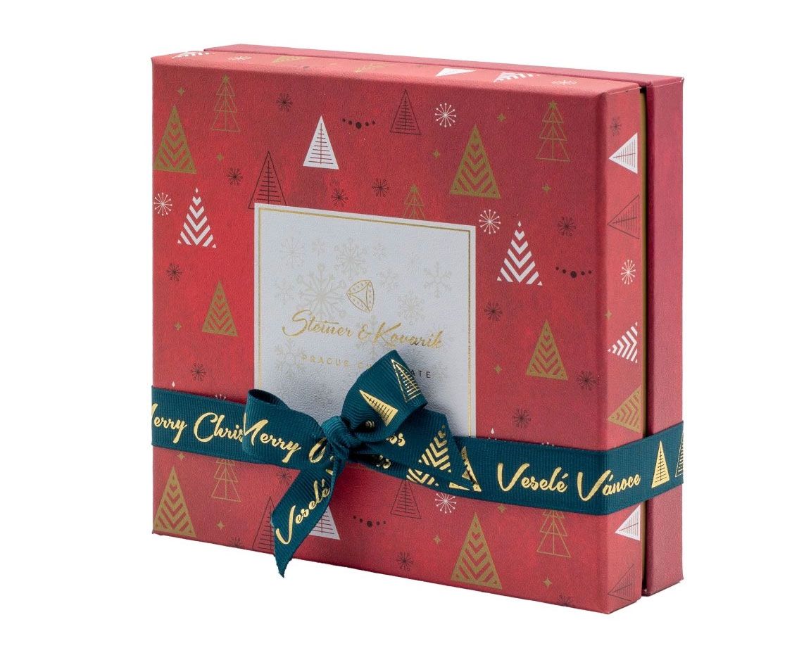 V úhledné krabičce najdete výběr nejoblíbenějších dražé. Křupavé kalifornské mandle, mrazem sušené borůvky a voňavá výběrová kávová zrnka, to vše obalené do nejlepší čokolády. Vánoční dárkovou krabičku Steiner & Kovarik prodává Pražská čokoláda za 648 KčFoto: Archiv firmy
