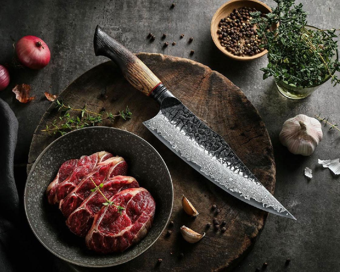 Muže, který se rád blýskne svým kuchařským uměním, potěšíte nožem šéfkuchařů. Nůž XinZuo MO X06 8.5 má damaškovou čepel s délkou 219 mm a výraznou dubovou rukojeť. K dostání je na xinzuo.cz za 1 999 Kč a za 300 Kč si můžete připlatit za gravírování vlastního textuFoto: Archiv firmy