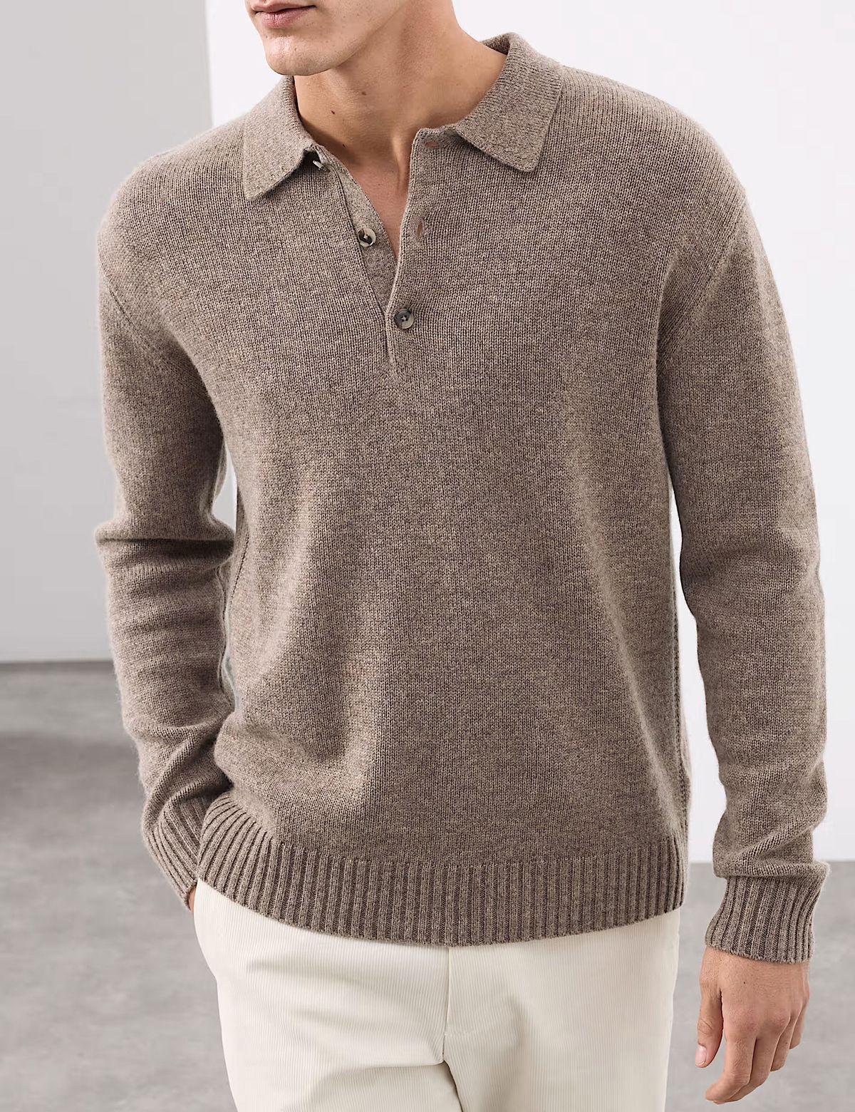 Pod stromečkem by neměli chybět ani „měkouši“. Polo svetr ze směsi vlny a kašmíru patří k nadčasovým kouskům, které nevyjdou z módy a sluší všem, bez ohledu na věk. Svetr z kolekce Autograph prodává Marks & Spencer v odstínu neutral (na fotce) nebo temně olivové barvě za 4 899 KčFoto: Archiv firmy