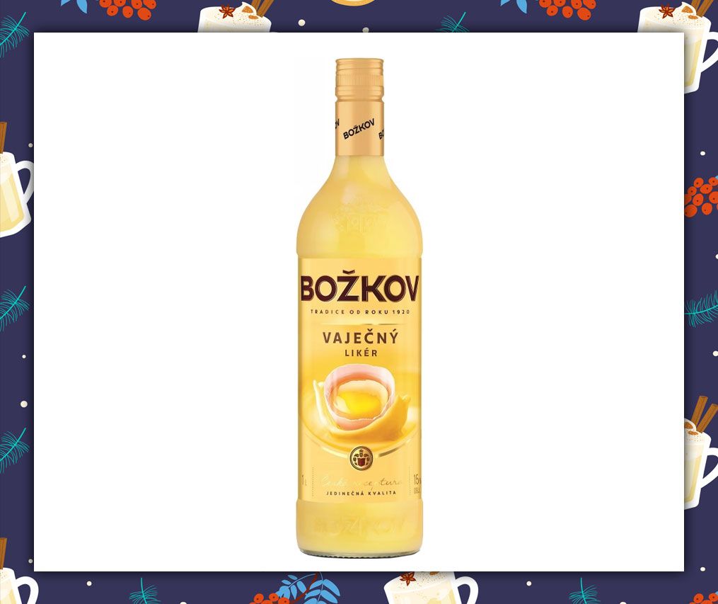 Vaječný likér Božkov obsahuje mléko, cukr, melasový líh, vaječné žloutky, aromata, ethylvanilín, barvivo: tartrazin (E102), vaječné bílky. Obsah alkoholu je 15 %. Lahev o objemu 0,5 litru vyjde v obchodech na 120–160 Kč, ale vždy kolem svátků ho najdete ve slevě, kdy se dostane i pod stovkuFoto: Archiv firmy